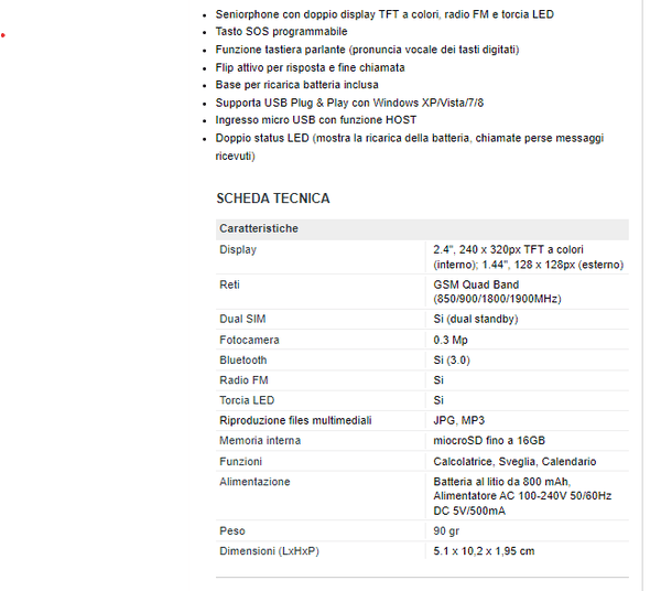 SENIOR PHONE CON DOPPIO DISPLAY TFT A COLORI E FOTOCAMERA